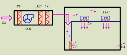 Fan Filter Units,中文意思為'風(fēng)機(jī)濾器單元(機(jī)組)'。也就是將風(fēng)機(jī)和過濾器(高效過濾器(HEPA)或超高效過濾器(ULPA))組合在一起構(gòu)成自身提供動(dòng)力的末端凈化設(shè)備。確切地說是一種自帶動(dòng)力、具有過濾功效的模塊化的末端送風(fēng)裝置。風(fēng)機(jī)從FFU頂部將空氣吸入并經(jīng)HEPA過濾,過濾后的潔凈空氣在整個(gè)出風(fēng)面以0.45m/s±20%的風(fēng)速均勻送出。