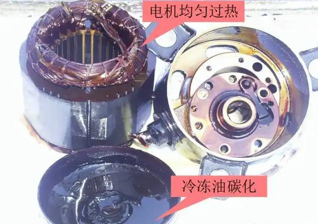 如沒有處理干凈,當(dāng)新的空調(diào)壓縮機(jī)電機(jī)運(yùn)轉(zhuǎn)后,殘留酸性物質(zhì)會(huì)腐蝕空調(diào)壓縮機(jī)電機(jī)絕緣層,造成新空調(diào)壓縮機(jī)燒毀。