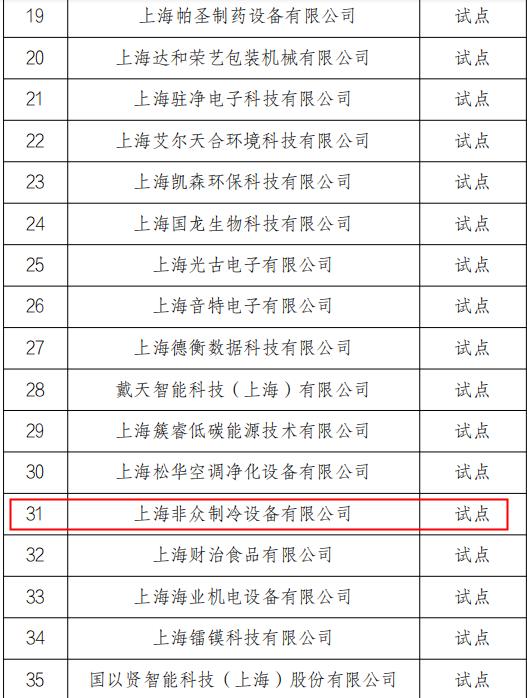 根據(jù)《松江區(qū)專利工作試點和示范企業(yè)認定與管理辦法》(松知局[2018]1 號),經(jīng)自主申報、專家評審、區(qū)市場監(jiān)管局班子會研究,擬認定上海非眾制冷設(shè)備有限公司等35家企業(yè)為 2022年度“松江區(qū)專利工作試點企業(yè)”。這標志著上海非眾一直堅持著高質(zhì)量創(chuàng)新發(fā)展的道路上,發(fā)揮了較好的示范作用。