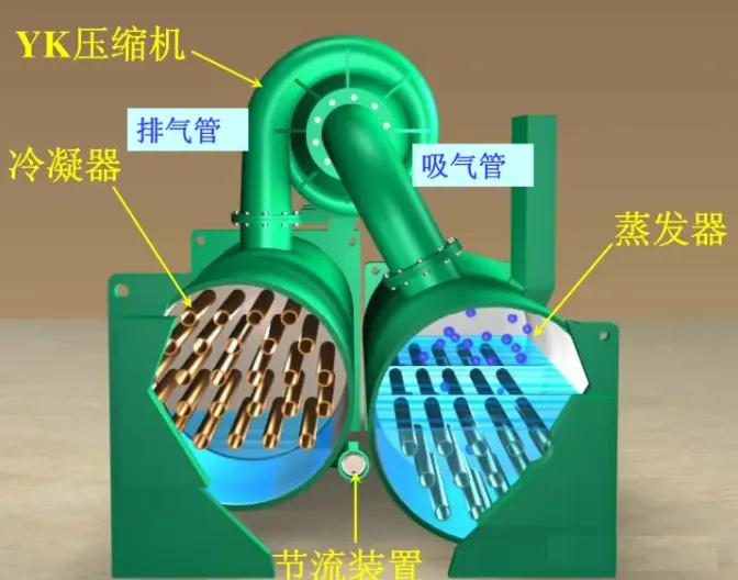 冷凝器作為制冷循環(huán)系統(tǒng)的四大部件之一,扮演著非常重要的重用。其主要功能就是將高溫高壓的氣態(tài)冷媒通過冷卻水將其冷凝到高溫高壓的液體,將熱量通過相變的方式釋放給冷卻水,再有冷卻水將熱量排放到環(huán)境中去。